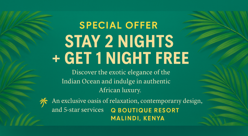 Q Boutique Resort in Malindi, Kenya, is an exclusive 5-star retreat that blends contemporary design refinement with the vibrant authenticity of Swahili culture. Located in a peaceful area just a 10-minute walk from the stunning Indian Ocean beaches, the resort offers 31 tastefully decorated rooms and suites inspired by tropical landscapes and local traditions. Guests can enjoy refined cuisine focusing on local ingredients and international influences, as well as a dedicated spa for relaxation and wellness, offering therapeutic massages and yoga sessions. Malindi, with its rich history, paradisiacal beaches, and cultural attractions such as the Gedi Ruins and Marine Park, completes the experience. Q Boutique Resort is the ideal place for an authentic holiday, private events, and personalized retreats, providing a serene and elegant oasis on Kenya’s coast.